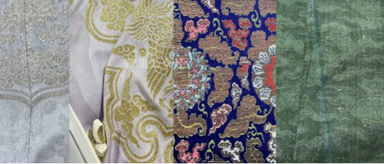 The fabric used can be plain or luxurious. Satin fabrics are often used. The four techniques shown in the picture above are silver – weaving, gold – weaving, zhuanghua (妆花, a complex brocade – like technique), and anhua (暗花, a pattern woven in a subtle way). These four techniques are also widely applied.