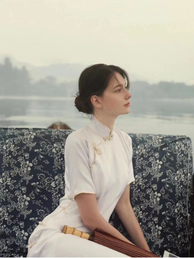As for girls who have sloping shoulders and a petite figure, choosing a traditional cheongsam with “large flared sleeves + loose tailoring” may bring unexpected surprises.