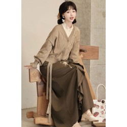 Fengting Wan 枫亭晚 - Han Chinese Element Daily Cardigan & Top & Skirt Hanfu