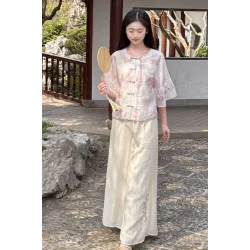 ▪ Set Include: Pink Top + Wide-leg Pants ▪ Source of Inspiration: Neo-Chinese Style Hanfu..