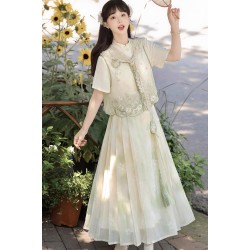 Swallow Planet 燕子星球 - New Chinese Style Preppy Style Jacket & Shirt & Vest & Mamian Skirt Set