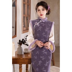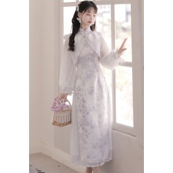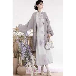 Wisteria Poems 紫藤词 - Qi Pao & Knitted Cardigan Set