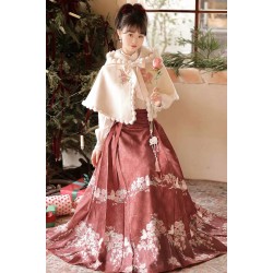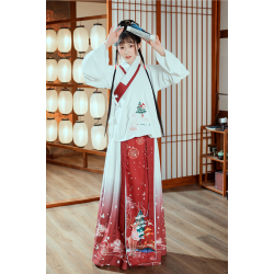 Christmas Tree 圣诞树 - Han Element Hanfu Top & Cross Collar Mamian Skirt Set