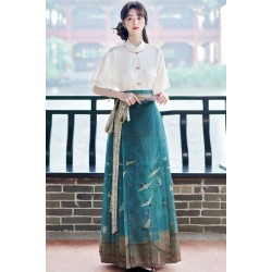 Azure Ripple 云端青波 - New Chinese Style Straight Collar Mamian Skirt Set