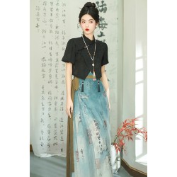 Blue Ink 蓝色墨水 - New Chinese Style Top & Mamian Skirt Set
