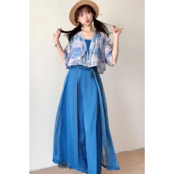 ▪ Set Include: Tang Banbi (half-sleeved top) + Wide-leg Pants + Belt ▪ Material: 75%% viscos..