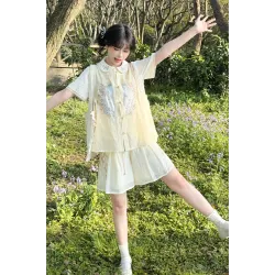 Sleepless Bear 失眠小熊 - Han Chinese Element Preppy Style Coat & Top & Mamian Skirt Set