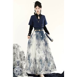 Qing Yan 青魇 - New Chinese Style Stand Collar Top & Cape & Mamian Skirt Set