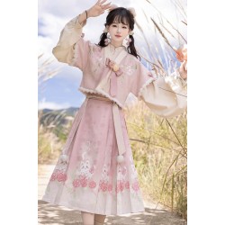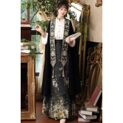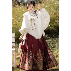 Snow Rose 雪地蔷薇 - New Chinese Style Top & Cape & Mamian Skirt Set