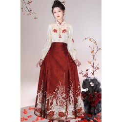 Red Bird Flower 红花鸟 - New Chinese Style Wedding Hanfu Top & Mamian Skirt Set