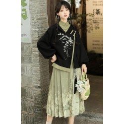 Pine Scent 闻松 - New Chinese Style Hoodie Top & Mamian Skirt Set