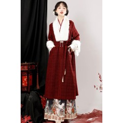 Velvet Soirée 丝绒晚宴 - Han Chinese Element Stand Collar New Year MaMian Skirt Outset