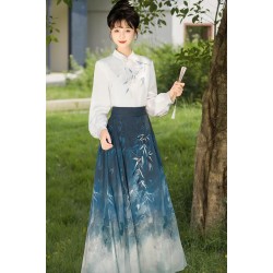 Vast Ocean 沧溟 - New Chinese Style Top & Mamian Skirt Set