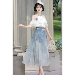 Summer Letter 夏日来信 - New Chinese Style Vest & Shirt & Mamian Skirt Set