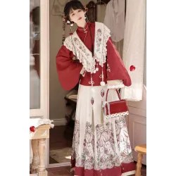Ying He 迎贺 - New Chinese Style New Year Hanfu Top & Yunjian & Mamian Skirt Set