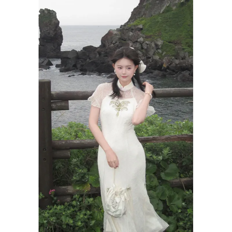 This mermaid-style cheongsam dress from the "Suyun Liufang" collection is crafted from carefully selected lace fabric—lightweight and comfortable.