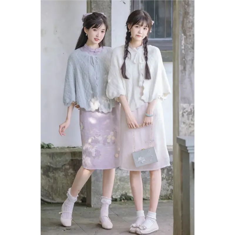 The cropped coat of this "Autumn Lulu" cheongsam set is made of faux mink fabric—soft and plush, offering exceptional comfort.